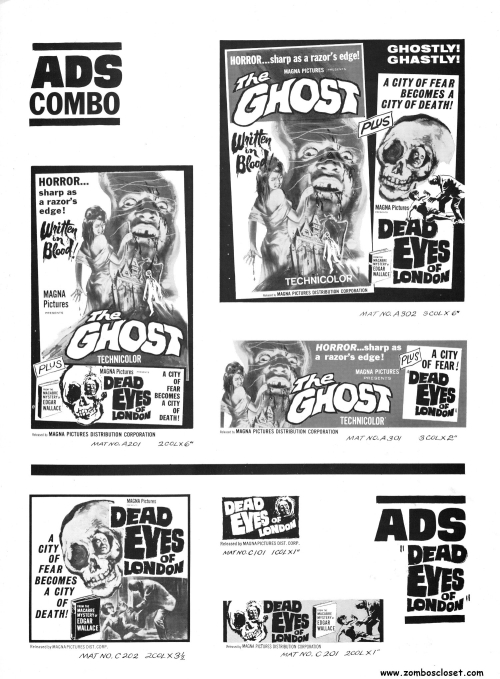 Directed by Alfred Vohrer and written by Egon Eis and Wolfgang Lukschy, this is — like all krimi — based on the novel by Edgar Wallace, who is also the father of King Kong and giallo. It’s the first of a series of 14 movies filmed by Vohrer and was originally adapted in 1939 as The Dark Eyes of London AKA The Human Monster. It was remade in 1968 by Vohrer as The Gorilla Gang.
