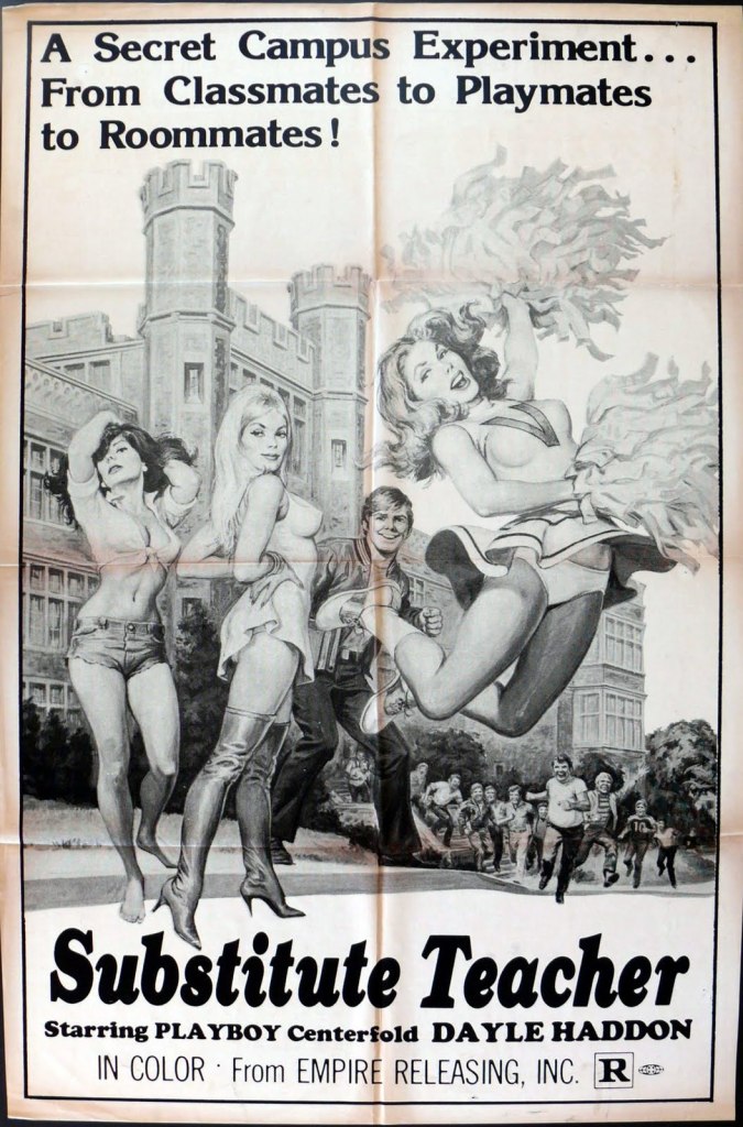 Well, it does have Dayle Haddon in it. Today, she’s known for ads where she sells anti-aging products for L’Oréal, but at one point, she almost played Dale in Flash Gordon and was Spermula. She was also nude in the April 1973 issue of Playboy, as the American poster reminds us.