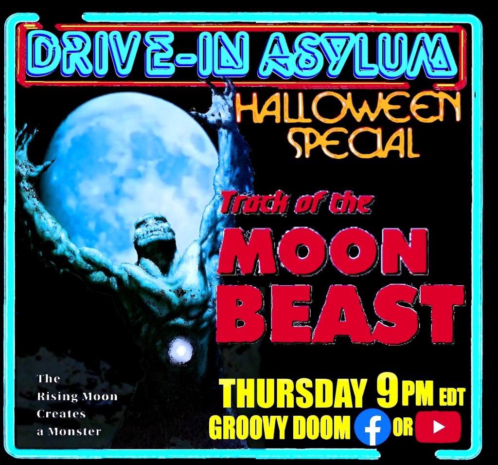 This Thursday night at the most frightening hour of 9 PM EDT, Bill and I will be appearing live and streaming on the Groovy Doom Facebook or YouTube channels to show Track of the Moon Beast, our special Halloween event.
