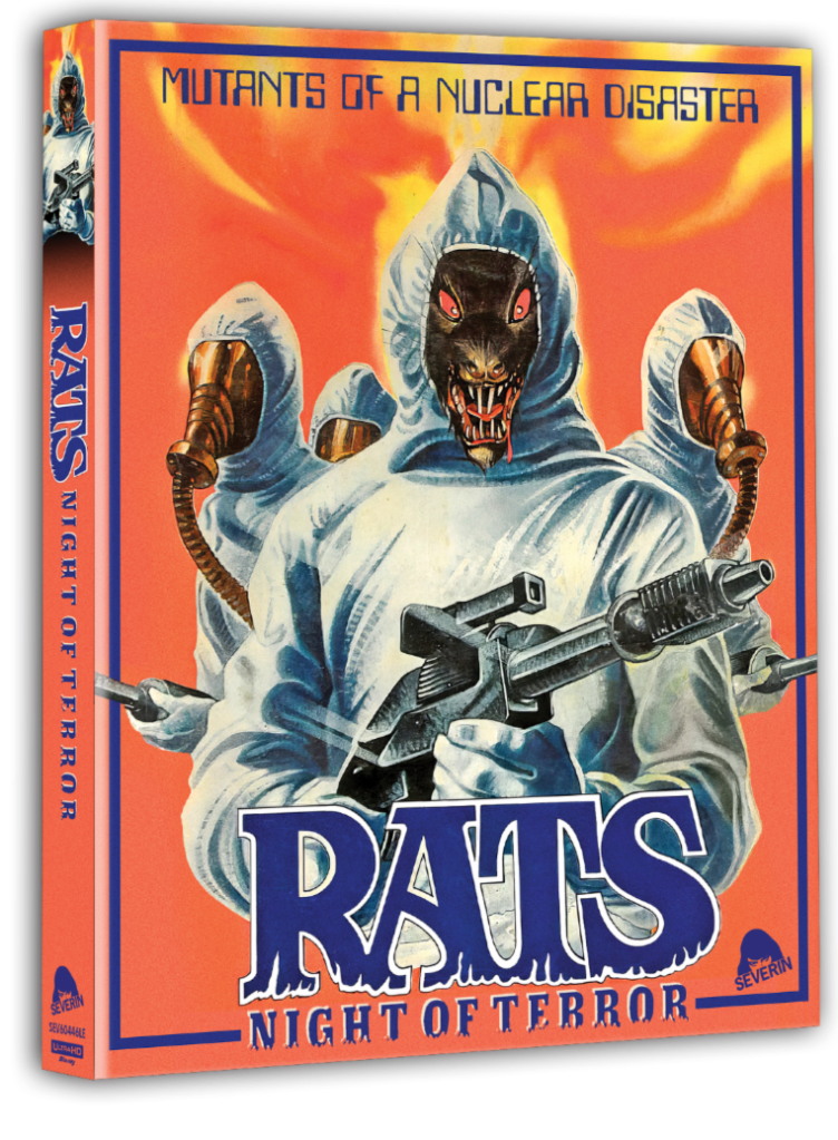 Rats: Night of Terror: Director Bruno Mattei and screenwriters Claudio Fragasso and Rossella Drudi take us to 225 A.B. (After The Bomb), as a gang of scavengers discover a seemingly abandoned city – including sets originally built for Once Upon a Time In America – only to become prey for millions of flesh-hungry rats. This has been scanned in 4K from the original camera negative for the first time ever and has 3 hours of new and archival special features and a bonus CD of the recently discovered/remastered soundtrack, plus”Under The Black Sky” by Pornographie Exclusive, a Severin produced music video with Geretta Geretta.