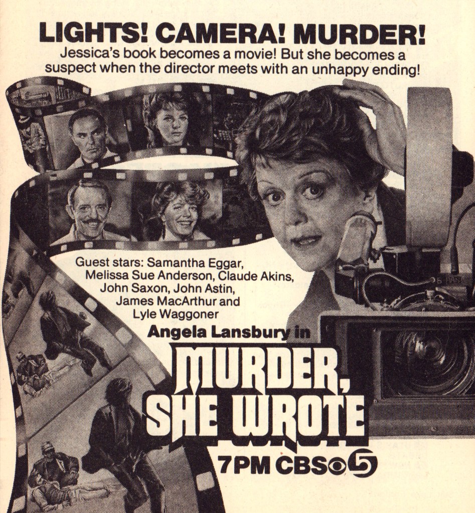 I always wonder when people are going to start blaming Jessica Fletcher for all these murders. By the third regular episode of the series, it happens. When she protests when her book is turned into a slasher movie, Jessica winds up as the prime suspect when the producer is killed.
