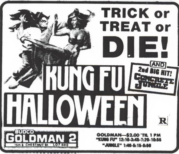 Shi da zhang men chuang Shao Lin (Shi, The Founder and Grandmaster of Shaolin) came to America under a bunch of titles: Fight for Survival, Fight for Shaolin Tamo Mystique, Lady Wu Tang, and Don’t Bleed on Me. And oh yes, the best title of all, Kung Fu Halloween.