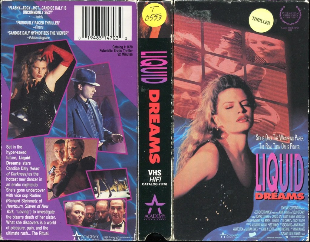 Liquid Dreams is a cocktail of a movie. Some Videodrome, some Wizard of Oz, some Dr. Caligari, lots of The Seventh Victim, some Café Flesh, some Cinemax After Dark and plenty Rinse Dream early 90s adult energy. This mix taste good and isn’t afraid to show bloody lips, BDSM imagery and static bursts of noise and video. Or to have John Doe from X be a cab driver.