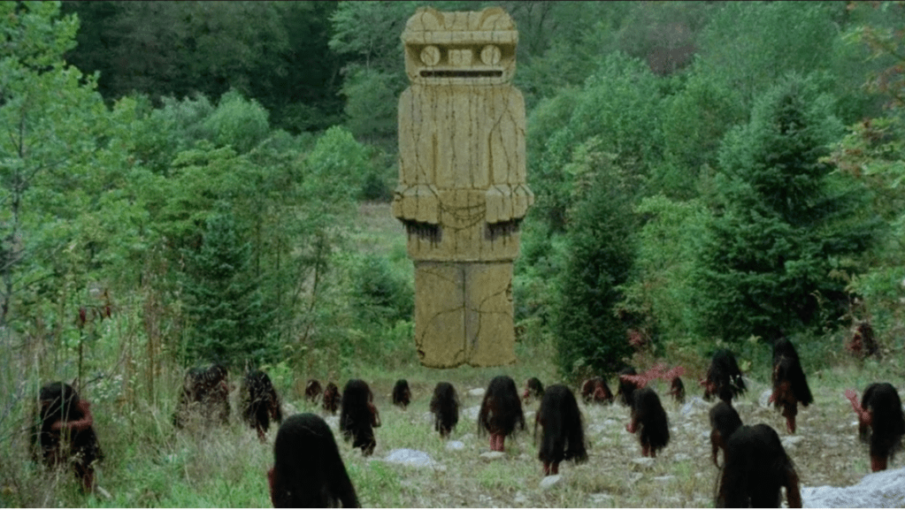 An ambitious regional horror movie that asks two good questions. “What if the little Zuni fetish warrior doll from Trilogy of Terror came from a tribe of hundreds more rampaging dolls?” And, “What if some survivors of a sunken ship got stranded on an island inhabited by the little blighters?”