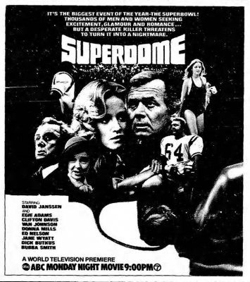 Also known in overseas quarters and VHS reissues domains as The Super Bowl Story and Countdown to the Super Bowl, ABC-TV actually used this “Monday Night Movie” entry as a promotional ramp-up for their broadcast of Super Bowl XII. And to make sure we watched: the cast is all here: Ken Howard (then of TV’s hit basketball series, The White Shadow), Michael Pataki (Grave of the Vampire and so many B&S favorites from the ’70s), Donna Mills (hubba-hubba and thumpy-whumpy), and a pre-Magnum Tom Selleck (still career building with things like Daughters of Satan), along with pro-players-turned-actors Dick Butkus and Bubba Smith.