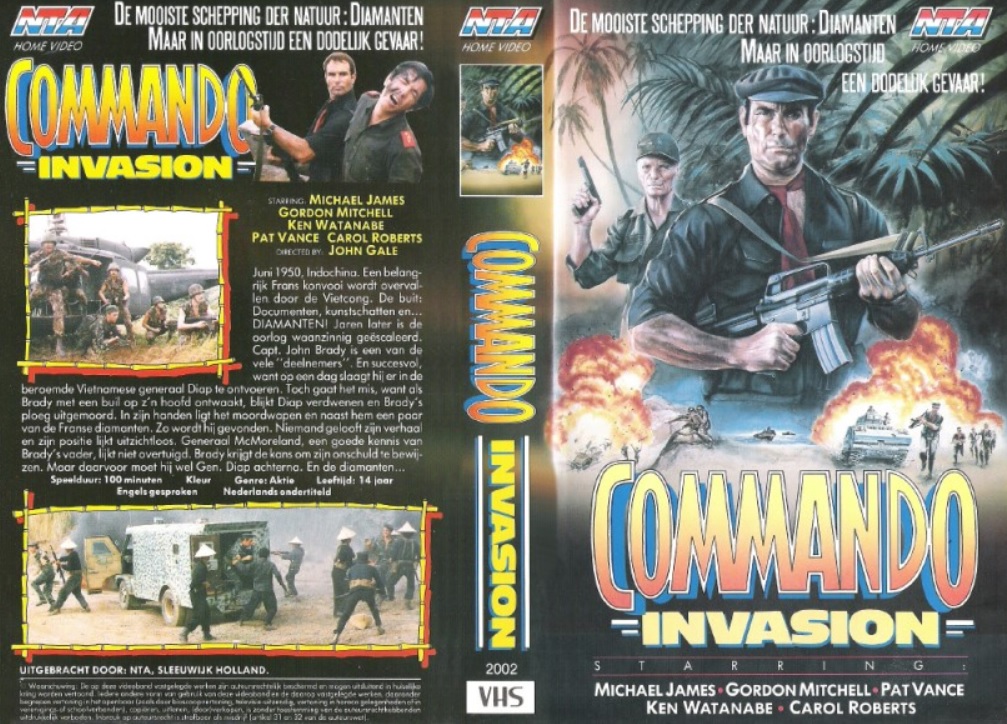 Okay, so there’s second unit and Assistant AD Rod Davis, aka Davies, aka we’ve never been able to track down if he’s an actual American expatriate or a South Asian doing the Americanization waltz on the lens as well as working the Brother typewriter. Paul Vance, aka Paul Van, however, is a real American who — as with our “star,” here, Gordon Mitchell — never “made it” in the U.S. film industry, but Vance forged a nice career northwest of Down Under with an acting resume of 20 films (starting with W Is War in 1983 and ending with Jungle Rats in 1988). We also have to mentioned that, in addition to co-writing Commando Invasion, Rod Davis also gave us this week’s Slash Exterminator (go back to Monday at 12 noon, folks; were writing ahead, here), and the we-love-it-so-much SFX Retaliator, among his five Filipino writing credits.