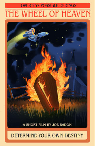 The Wheel of Heaven (preview, watched in 2022): Badon describes this project as one in which Purity (Kali Russell) is dealing with her car breaks down on a dark empty street in the middle of the night when she has a chance encounter with a mysterious party host (Jeff Pearson) and his strange guests, which leaves her with an existential dilemma: break free of her meaningless existence or simply just succumb to it’s meaninglessness.It’s also his love letter to not only the classic Choose Your Own Adventure novels of the 80’s, but also Starcrash, The Color of Pomegranates, The Twilight Zone and Beyond the Valley of the Dolls.