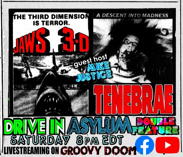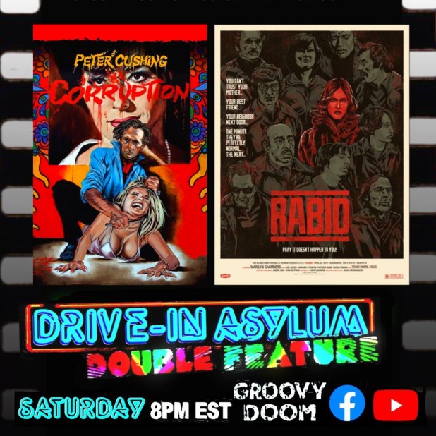 This Saturday, Bill and I are showing two movies with no guests. But you can be part of the show at 8 PM EST on the Groovy Doom Facebook and YouTube channels.