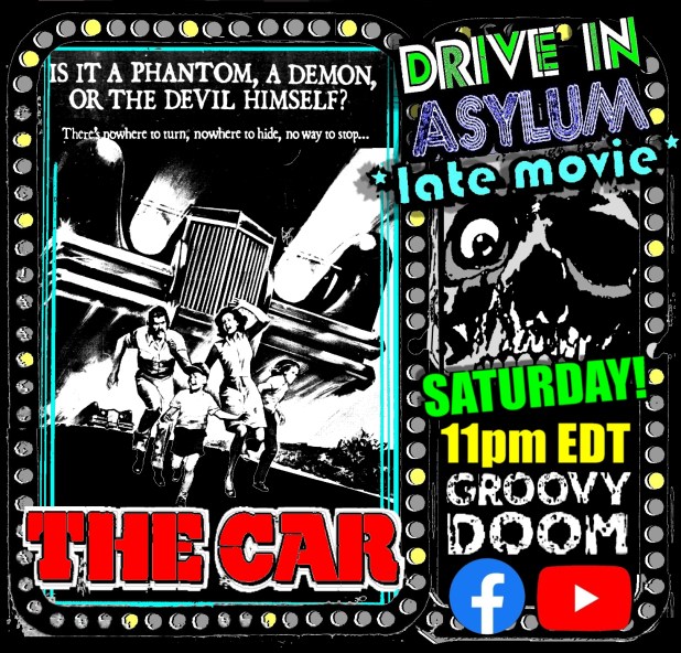 This Saturday at 11 PM EST, join Bill and me for one of our favorite movies ever, The Car. Be part of the most fun chat room around in the Groovy Doom Facebook and YouTube channels and watch the movie, then come back and discuss it with us.