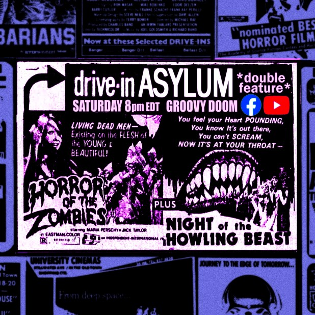 This Saturday at 8 PM EST on the Groovy Doom Facebook and YouTube channels, Bill and I will be recreating a double feature that played drive-ins all over the country.