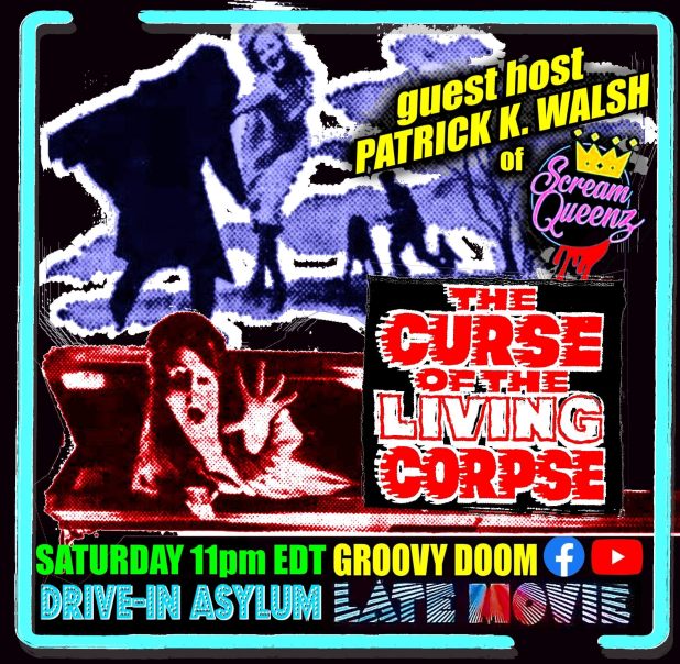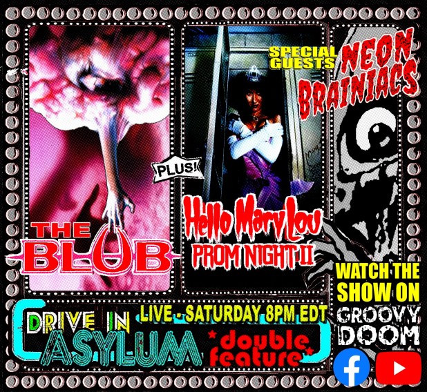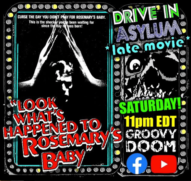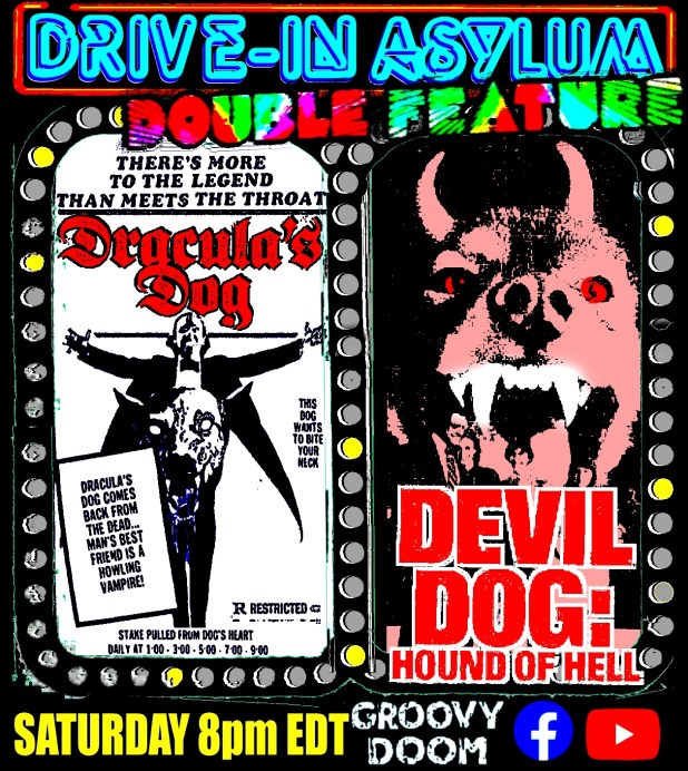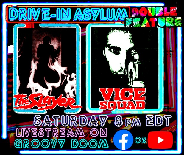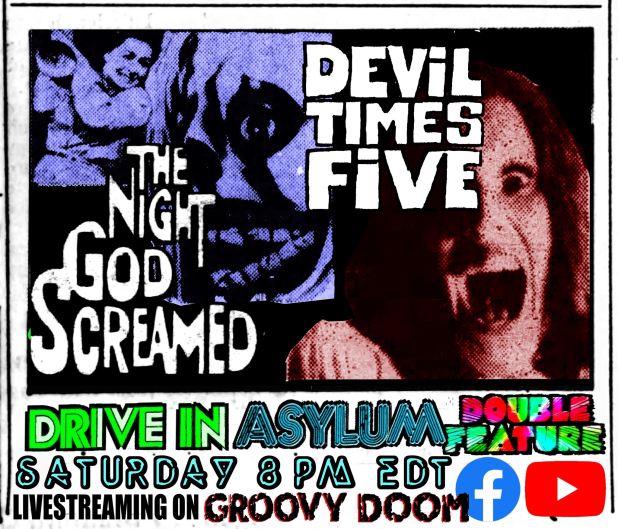 This Saturday, A.C. Nicholas brings filth to the Drive-In Asylum Double Feature as Bill and I giggle in glee starting at 8 PM EST. Watch from the safety of the Groovy Doom Facebook and YouTube channels.