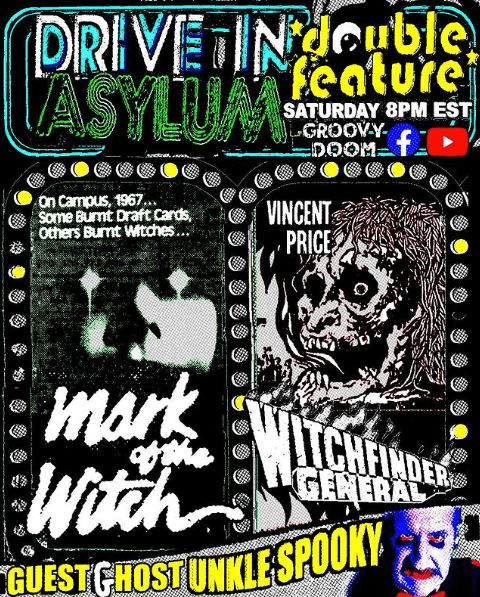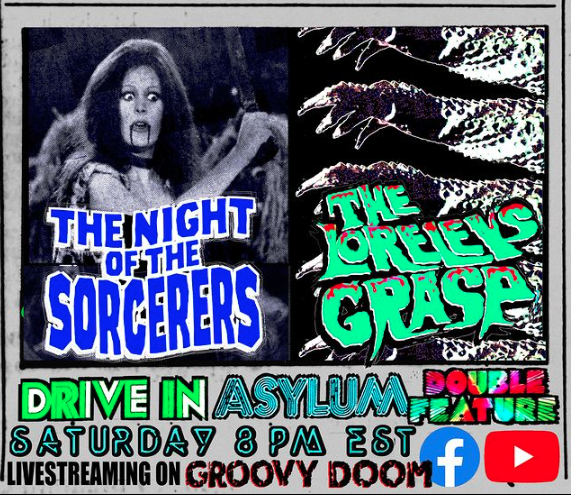 Bill and Sam are joined by Uncle Spooky this week for two witchy films this Saturday at 8 PM EST on the Groovy Doom Facebook and YouTube pages. We’ll discuss the films, share the newspaper ads and make some drinks. All you have to do is show up ready to cast some spells. Or drink.