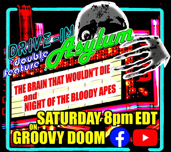 Two impossible medical nightmares, The Brain That Wouldn’t Die and Night of the Bloody Apes are playing this Saturday at 8 PM EST with our special guests Robert Freese and Paul Mcvay from the IT CAME FROM HOLLYWOOD book series. Watch on the Groovy Doom Facebook and YouTube pages.