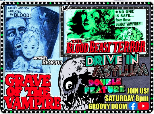 Bill and I will rise from our graves this Saturday at 8 PM EST on the Groovy Doom Facebook and YouTube pages for two vampire classics.