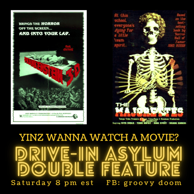 This Saturday night on the Groovy Doom Facebook page, we’re watching two great movies and it all starts at 8 PM East Coast Time. We’re joined by Sean Collier of Pittsburgh Magazine and The Number One Movie In America podcast!