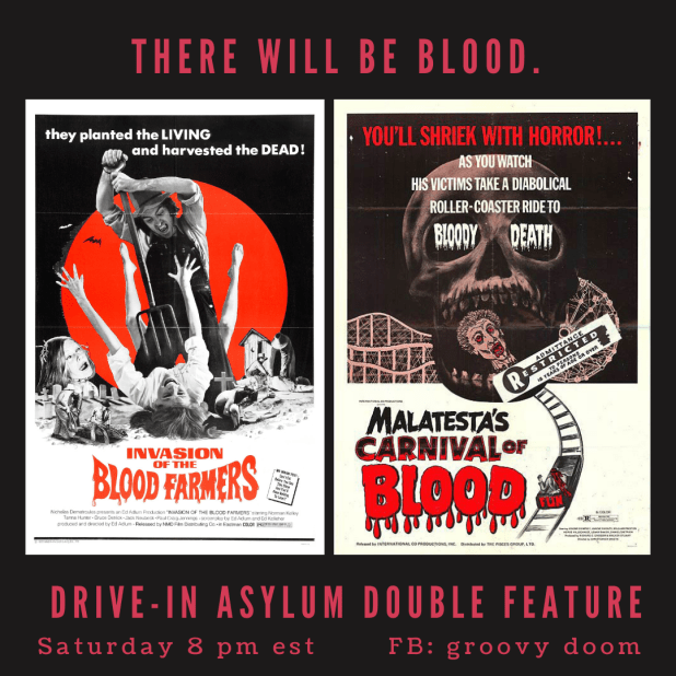 This Saturday, October 3, we’ll be live at 8 PM on the Groovy Doom Facebook page with two films — which we’ll get to in a bit.