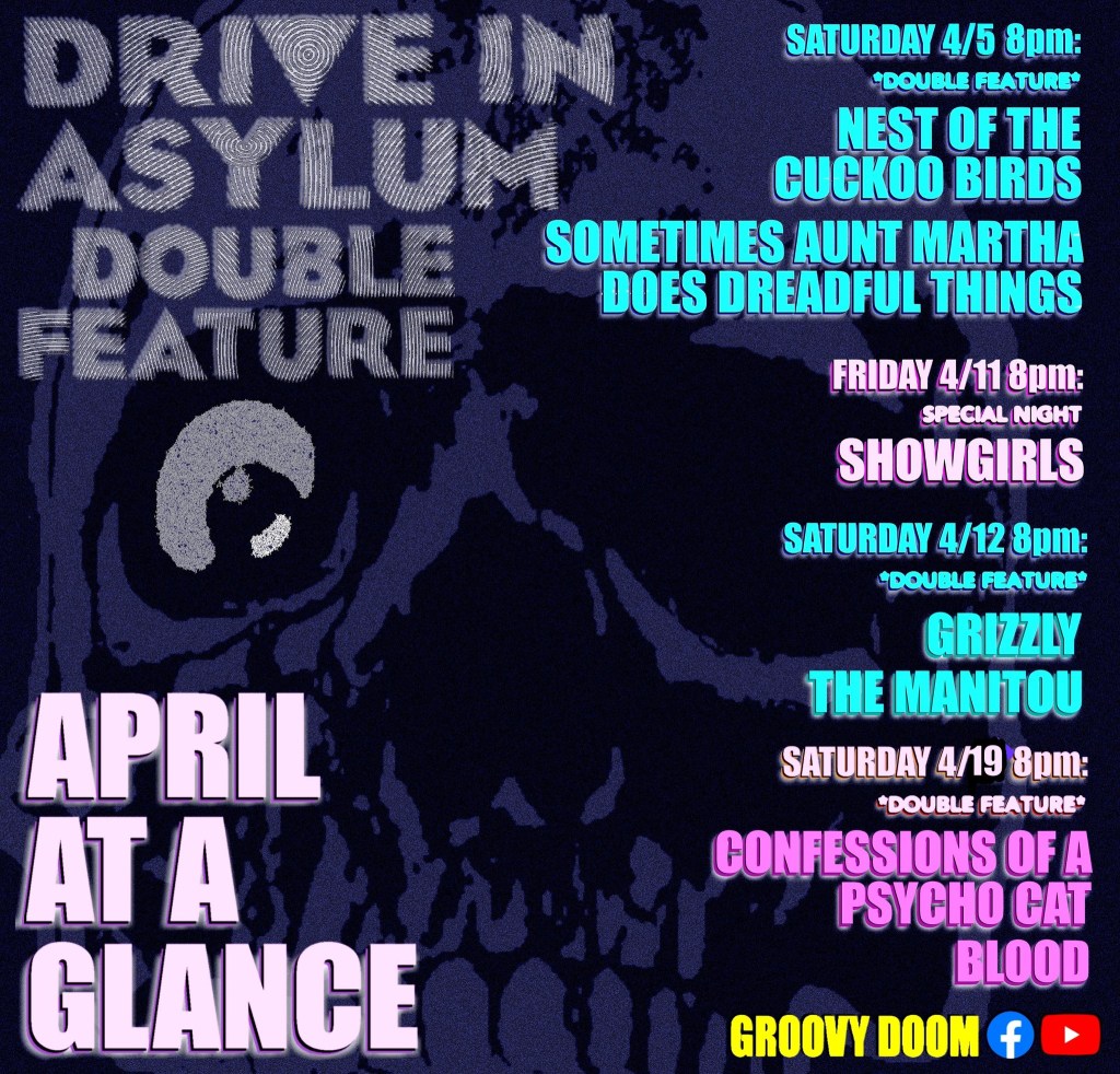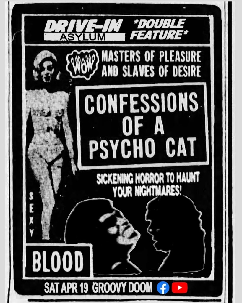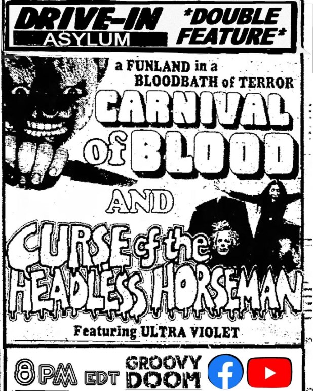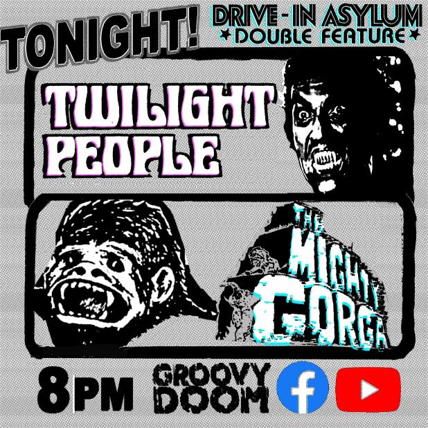 This Saturday, Bill and I are showing two movies at 8 PM EST on the Groovy Doom Facebook and YouTube channels.