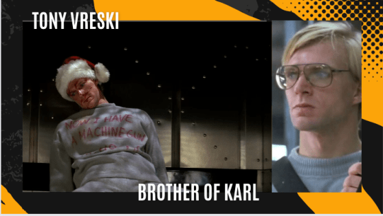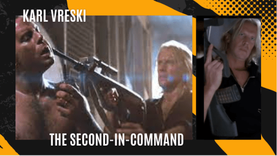 Who is he: Karl Vreski is an East German terrorist and the second-in-command for Hans Gruber. It’s thought that he also was part of the Volksfrei. He and his brother Tony cut the telephone lines — and one assumes the separate internet and alarm lines, which his out-of-control brother almost destroys — to take over Nakatomi Plaza.