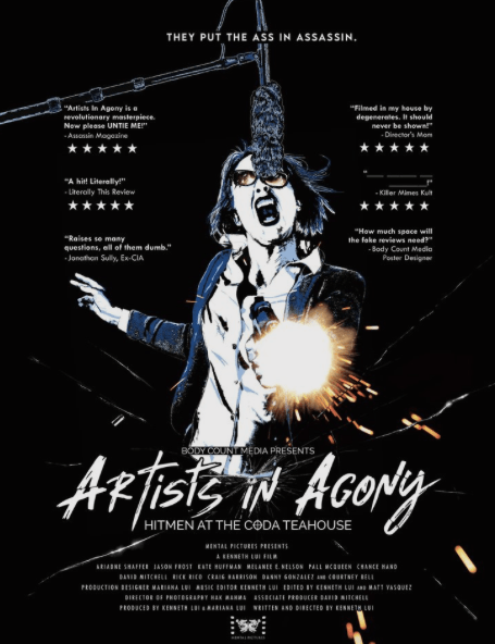 Artists In Agony: Hitmen at the Coda Teahouse (2021): This mockumentary follows four hitpeople who all died in the infamous Coda Teahouse Massacre: Frosty (Jason Frost), a new father balancing killing with child-rearing; stay-at-home mother Lucien Mercy (Ariadne Shaffer); Red Rick (Pall McQueen, but there’s also a musical version played by Paul Byrne) and his apprentice Lady Faith (Kate Huffman, but again, there’s a musical version of this character played by Liz Fenning).