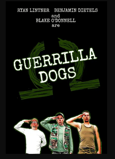 Directed by, written by and starring Blake O’Donnell (who also co-directed, co-wrote and co-starred in Bergeron Brothers: Wedding Videographerswith Benjamin Dietels, who is also in this movie), Guerilla Dogs is the story of three soldiers — Runway (O’Donnell), Hedgetrim (Dietels) and Wax (Ryan Lintner) who are struggling to not only keep it together but to keep a hostage named Mr. Money (Seth Gontkovic) in a time of war.