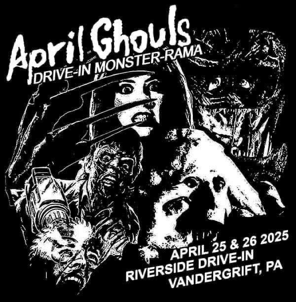 April Ghouls Drive-In Monster-Rama is back at The Riverside Drive-In Theatre in Vandergrift, PA on April 25 and 26, 2025. Admission is still only $15 per person each night (children 12 and under free with adult) and overnight camping is available (breakfast included). You can buy tickets at the show, but get there early and learn more here.
