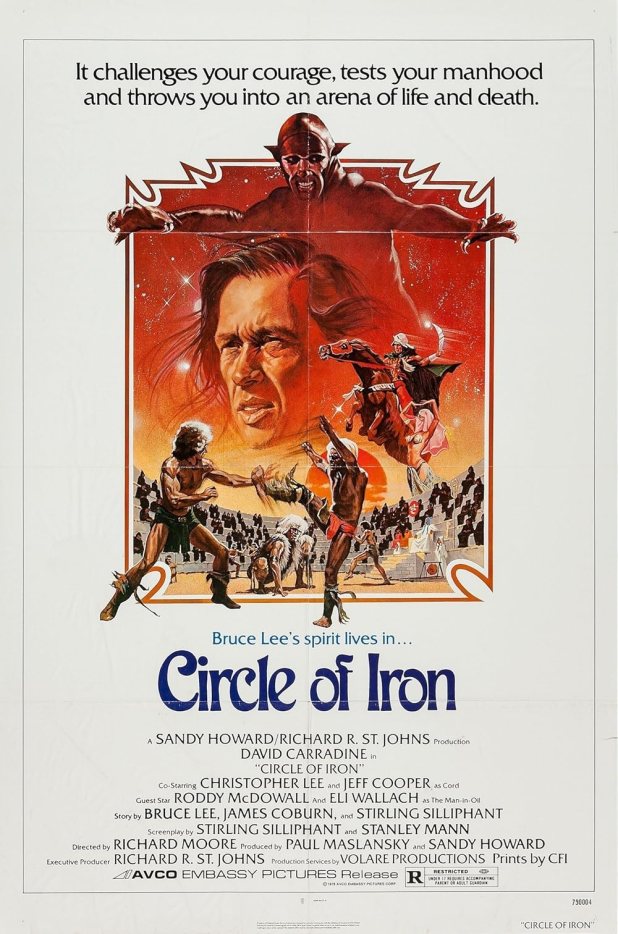 Cord (Jeff Cooper, who played Kaliman in a few Mexican movies) is a fighter who is undisciplined and kicked out of the temple by Roddy McDowall. Yet he still wants to find The Book of Knowledge, which is held by Zetan (Christopher Lee). The man sent on the quest instead of him, Morthond (Anthony De Longis, Blade from Masters of the Universe), has been nearly killed — and demands help to die with honor — and it seems like a fool’s errand. Then Cord meets the mysterious Blind Man (David Carradine) and starts his own quest.
