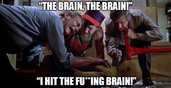Of the many foreign and domestic VHS and DVD sleeves issued. The original, disembodied floating-head design trope, wins . . . at least this time.