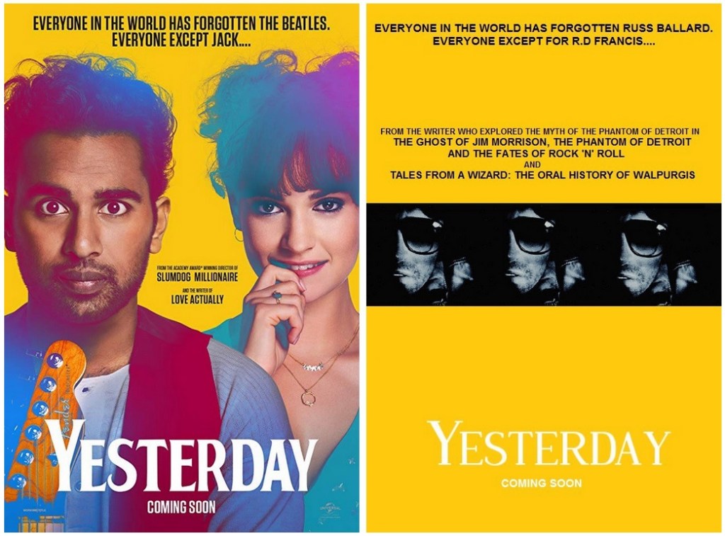 Poster Image Left: Yesterday poster courtesy of Etalon Films/Working Title Films/Universal Studios, via IMDB.com. Image Right: Graphic by R.D Francis. Russ Ballard’s Voices courtesy of Discogs. Typeface: “Anton” and “Dustismo” courtesy of Picfont.com.
