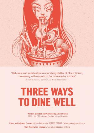Written, produced and directed by Alison Peirse, an Associate Professor of Film at the University of Leeds who “is drawn to the untold stories of women working in film, both in front of and behind the camera,” Three Ways to Dine Well is the kind of horror documentary we need more of. It’s not concerned with celebrities telling us things like, “Well, that was the best sequel” and instead getting at the bloody heart, brains and soul of those behind the lens and on the screen with a meal before them.
