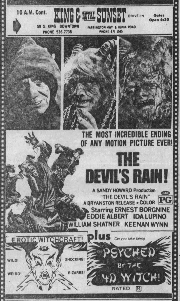 When this came out on VHS, it had Herschell Gordon Lewis introduce it and the name changed to Dr. Gore. In the credits, it also says that Patterson was America’s #1 magician, which seems like the kind of claim that can be verified. Also known as Shrieks in the Night, this movie is also evidence as to why Patterson died of metastatic malignant melanoma — his death certificate is linked on his IMDB page — because he’s lighting up in every scene, even when he’s in his lab. He also picks his nails with a scalpel, so there’s that.