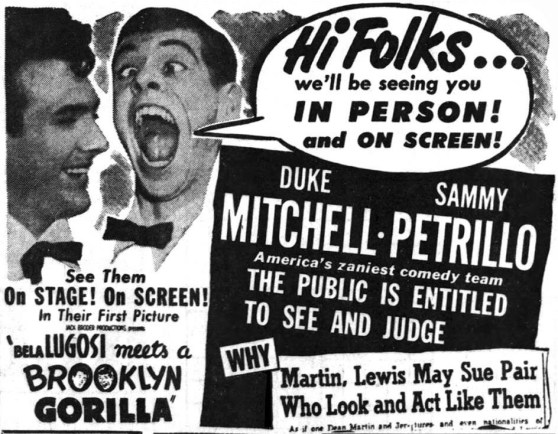 Comedian Sammy Petrillo had made a career out of imitating America’s hottest comic, Jerry Lewis. They looked alike and hey, even sounded the same. Petrillo even worked for Lewis once on The Colgate Comedy Hour and got signed to the same talent agency as Lewis, even as a minor, but was released from his contract when he believed that Lewis was intentionally holding him back.