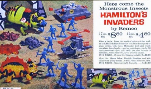 In 1964, Remco made the Hamilton’s Invaders line of toys. These giant bug movies were big on TV, so they just made non-copyright friendly versions of all of them with Horrible Hamilton being the wasp from this movie. There was even a set that came with a volcano. Some of the monsters from this set ended up becoming a part of Remco’s Voyage to the Bottom of the Sea toy line, as these guys were big on recycling.
