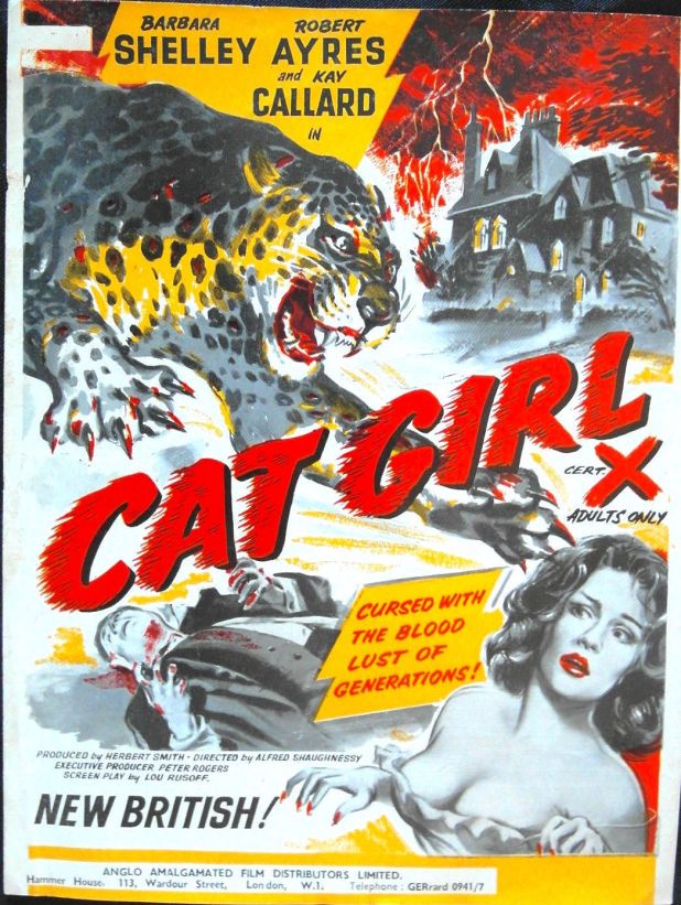 If you were at the drive-in in 1957, you probably could have caught this on a double bill with another American-International Pictures release, The Amazing Colossal Man. Shelly would also star in another cat-themed horror movie, The Shadow of the Cat.