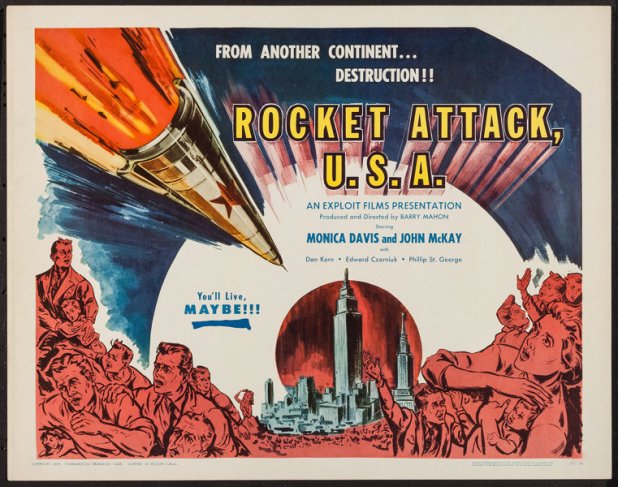 While the majority of science fiction points toward liberal worries against groupthink — nearly every version of Invasion of the Body Snatchers — Rocket Attack U.S.A. is at once fantasy and propaganda. I have no idea if Barry Mahon believed in what he was selling — the man did fight for our country after all and spent time in a concentration camp — but I think he did know that he could make some money off of the worries that Sputnik was going to destroy America.