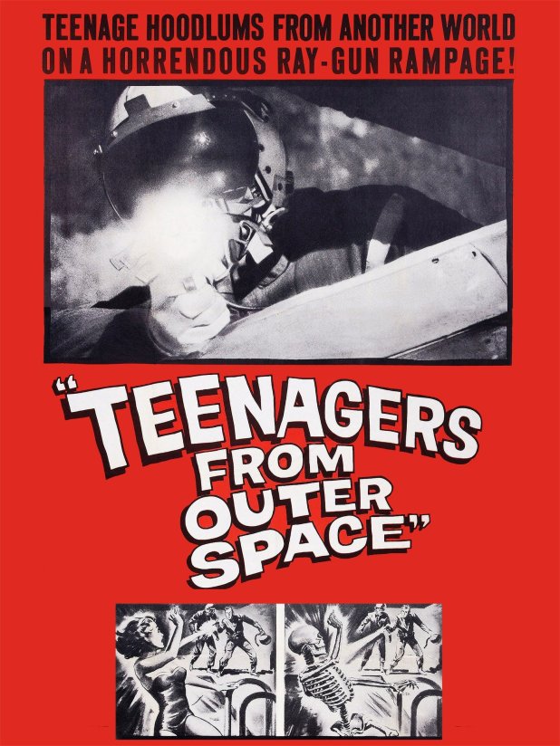 Teenagers from Outer Space was written, produced and directed* by its star Tom Graeff, who sold the movie to Warner Brothers and made no money from it. It did play a double bill with Gigantis the Fire Monster, which is really Godzilla Raids Again.