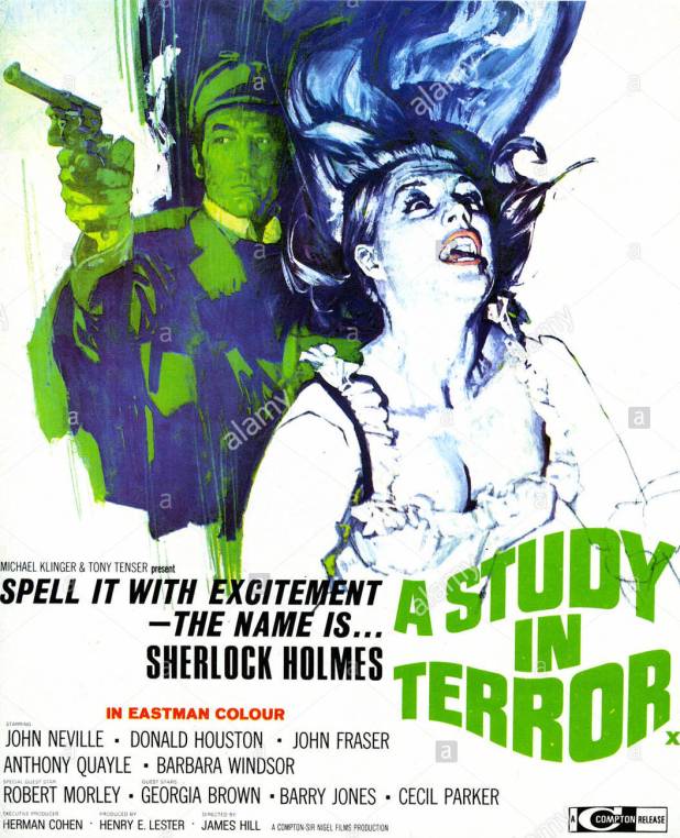 Holmes (John Neville, The Adventures of Baron Munchausen) and Watson (Donald Huston, Tales that Witness Madness) have already been interested in the Whitechapel murders, but then they receive a mysterious package. It’s a case of surgical instruments missing a scalpel with the family crest of the Duke of Shires.