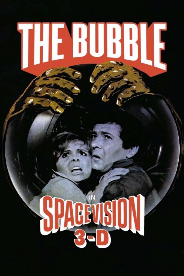 The Bubble came out in 3D in 1966, years after the first of the fad, and had twenty minutes of pure popping out at the camera moments that got cut from the 2D version of this. This was made in Space-Vision 3-D, the same process that was used for Andy Warhol’s Dracula. It was directed and written by Arch Oboler, who also directed and wrote the 3D movie Bwana Devil and The Twonky.