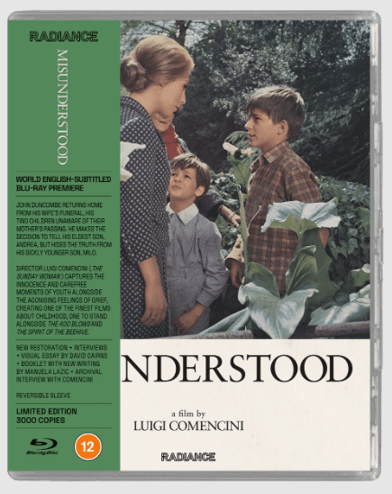 The Radiance Films blu ray of Misunderstood has a 2K restoration from the original negative, as well as extras such as interviews with co-screenwriter Piero De Bernardi, Cristina Comencini and Michel Ciment; a visual essay by David Cairns on Comencini and the filmmaker’s affinity for childhood stories and a trailer. This limited edition of 3000 copies is presented in full-height Scanavo packaging with removable OBI strip leaving packaging free of certificates and markings. There’s also a reversible sleeve featuring designs based on original promotional materials and a limited edition booklet featuring new writing bycritic Manuela Lazic and a newly translated archival interview with Comencini.