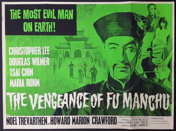 Directed by Jeremy Summers (The House of 1,000 Dolls) and written by Peter Welbeck — hey, that’s Harry Alan Towers — this is the third of five movies that would feature Christopher Lee as Sax Rohmer’s supervillain Fu Manchu.