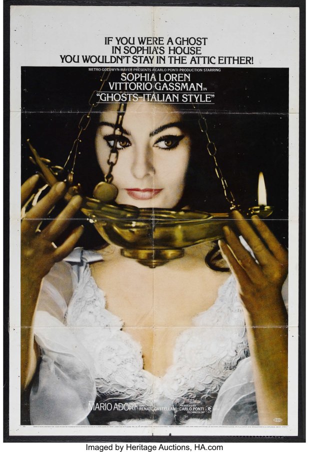 Questi Fantasmi played U.S. theaters under this title so that people would remember Loren in Marriage Italian Style. In fact, her co-star from that movie, Marcello Mastroianni, shows up in as a headless ghost at the end. This film was produced by Sophia’s husband, Carlo Ponti. You know, the man who brought us both Dr. Zhivago and Torso.