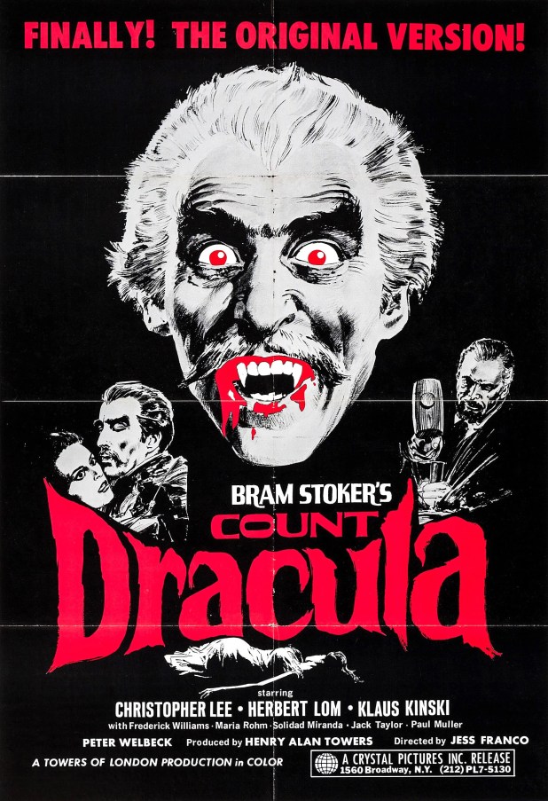 After years of being in Hammer Dracula movies, Christopher Lee starred in this Harry Alan Towers produced, Jess Franco directed version of Bram Stoker’s novel.