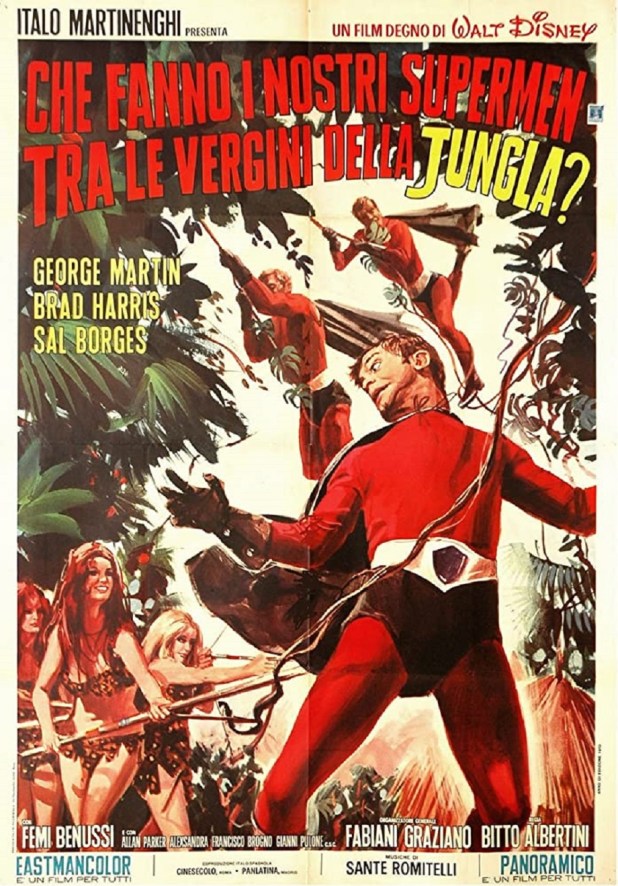 The title of this movie means What are our supermen doing among the virgins of the jungle? but you may know this movie better as Three Supermen In the Jungle, one of eleven films in the Three Supermen cycle of films: