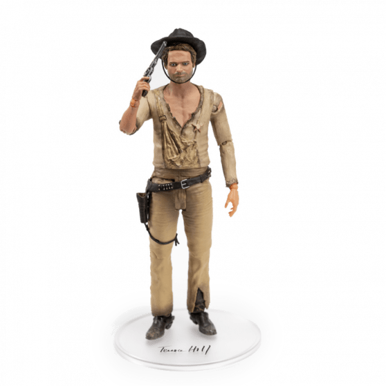 Again, unlike every Italian cowboy before him, Trinity doesn’t come into town dragging a coffin or tall in the saddle. He’s sleeping, lounging as his horse drags him somewhere new. His first meeting in the movie is with bounty hunters who have an injured Mexican with them. Trinity takes their prisoner and kills the others when they try to shoot him in the back. He’s nearly superhuman in his ability to draw and shoot, which is the opposite of his laconic demeanor.