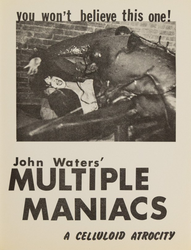 Inspired by Two Thousand Maniacs!, this ends with Divine seizing. her power, shouting “I’m a maniac! A maniac that cannot be cured! O Divine, I am Divine!”