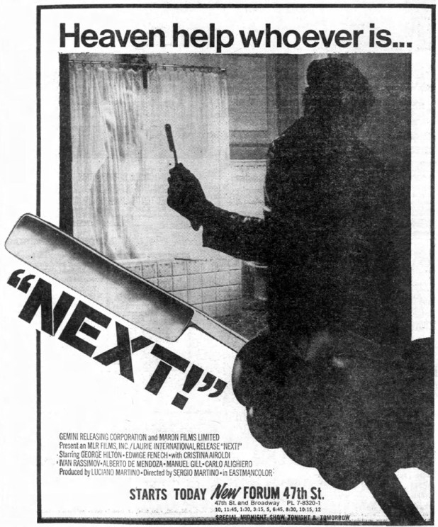 Wondering why this film isn’t just titled The Strange Vice of Mrs. Ward? Turns out a woman named Mrs. Ward sued before the release, claiming that the film would ruin her good reputation, so they changed the title. Yes, Italy, the country where you can make a movie called Zombi 2and have nothing to do with the original film still has legal settlements such as this. You can also find this movie under the titles Blade of the Ripper, Next! and The Next Victim.