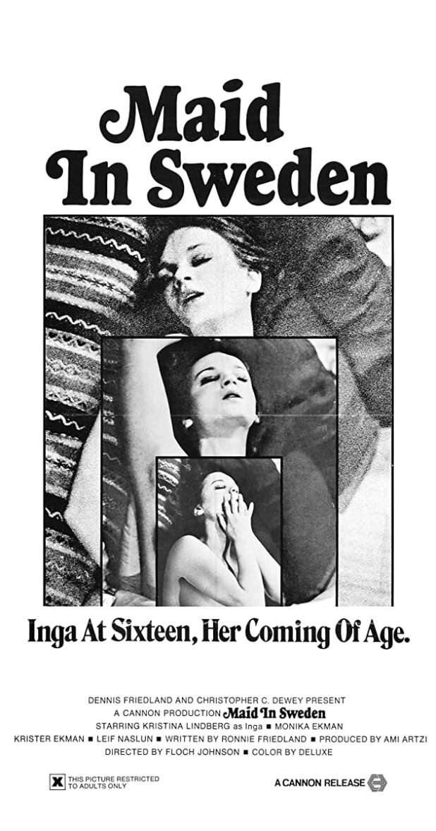 Dan Wolman also made Baby Love and Nana for Cannon. Here, the Israeli filmmaker is in Sweden, making a movie about a young girl named Inga who leaves her small town for the big lights and big city of Stockholm. There, she’s shocked to find her sister Greta (Monica Ekman) is living in sin with her boyfriend Casten (Krister Ekman, Monica’s real-life husband). Before you can say Swedish adult film imported by Cannon, Casten is making love to both sisters, putting a wedge between them. Then, Inga leaves for home.