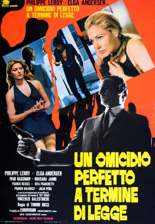 A Perfect Murder Under the Law is also known as Cross Current here in America. It’s directed by Tonino Ricci, who you may know from Rush, Panic or Encounters In the Deep. Story writer Aldo Crudo also was behind War of the Robotsand the ensuing script was written by José María Forqué and Arpad DeRiso (Death Steps In the Dark).