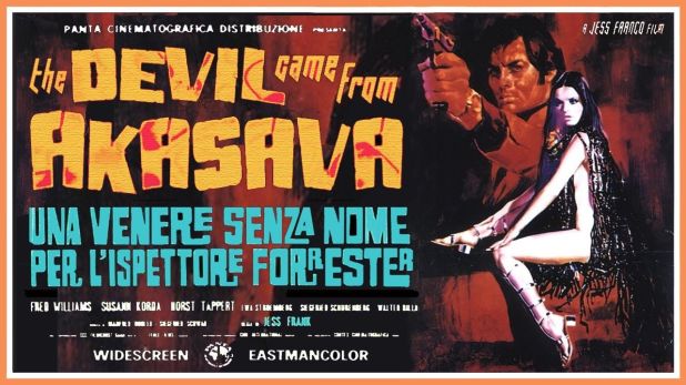 Prof. Walter Forrester (Ángel Menéndez) is a British scientist working in the Akasava jungle in South America who has disappeared and may have stolen a mysterious stone. His nephew Rex Forrester (Fred Williams) is looking for his uncle. But the real reason to watch this is British agent Jane Morgan (Soledad Miranda), who has a secret identity as the stripper wife of the British consul Irving Lambert (Alberto Dalbés), which seems pretty wild when you wrap your mind around it.