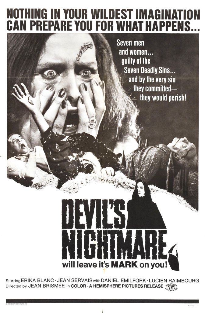 The Devil’s Nightmare is the only full-length movie that Jean Brismee directed. That’s a shame because I kind of love this movie’s mix of Gothic atmosphere and Eurosleaze sex and violence. And I absolutely adore the fake-out ending.