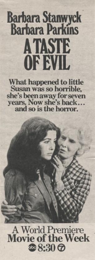 Producer Aaron Spelling thought A Taste of Evil was similar to another Sangster’s film, Scream of Fear. The writer admitted that it was the same story, just updated to America. It also owes a debt to Les Diaboliques.
